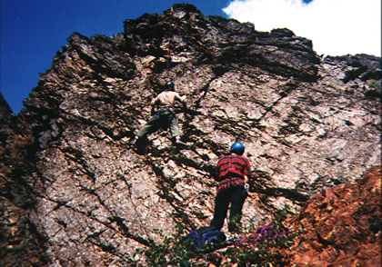 My brother Jacob (belay) and John Shook climbing near Rainbow